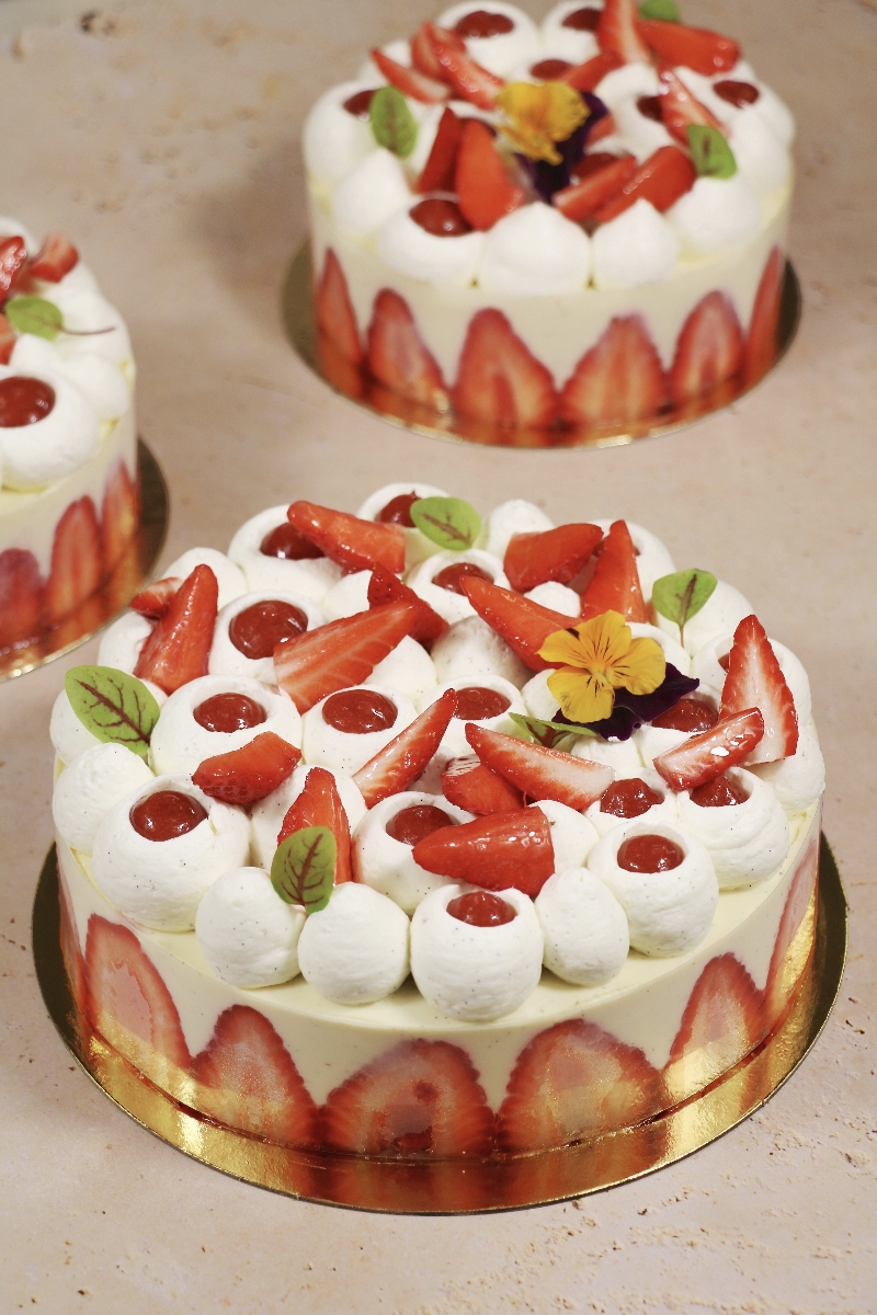 Un biscuit moelleux légèrement imbibé au citron, un confit de fraises bien parfumé, des fraises fraîches généreuses… le tout associé à une crème légère à la vanille et une chantilly douce et aérienne.Fraisier frais et gourmand, composé d’un biscuit moelleux imbibé au citron, d’un confit de fraises, de fraises fraîches et d’une crème légère à la vanille.Un dessert simple, frais et gourmand, où la fraise est mise à l’honneur tout en délicatesse