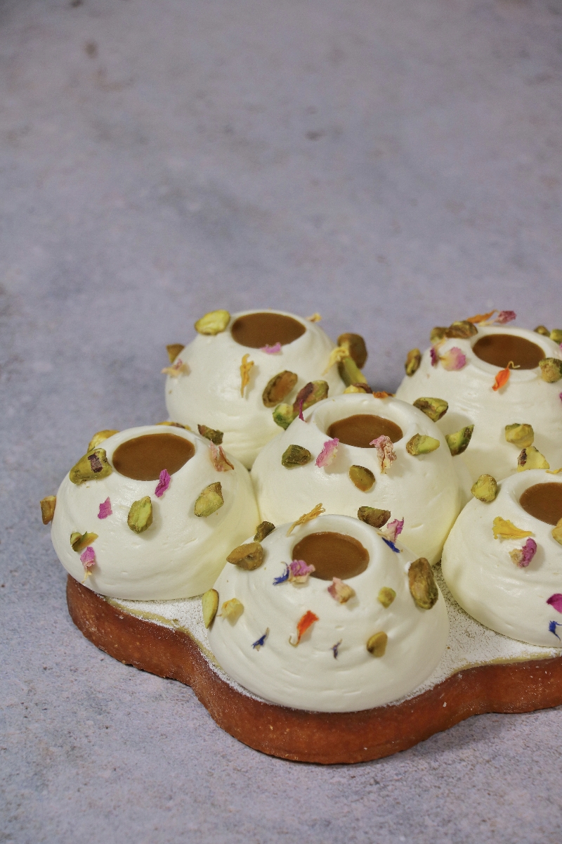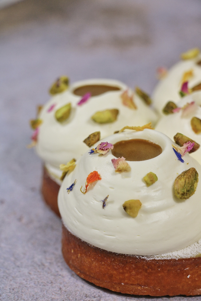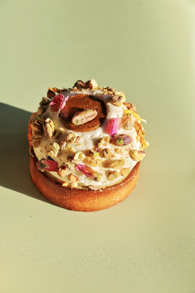 Chaque élément a été pensé pour offrir un équilibre parfait entre textures et saveurs, avec la pistache d’Iran comme star de ce dessert élégant. Si vous êtes amateur de pistache et de délicatesse florale, ce dessert saura vous séduire.