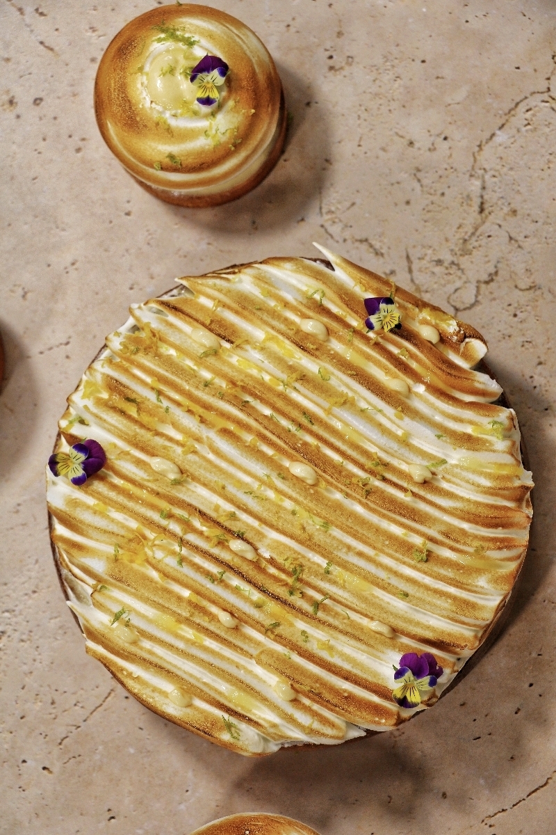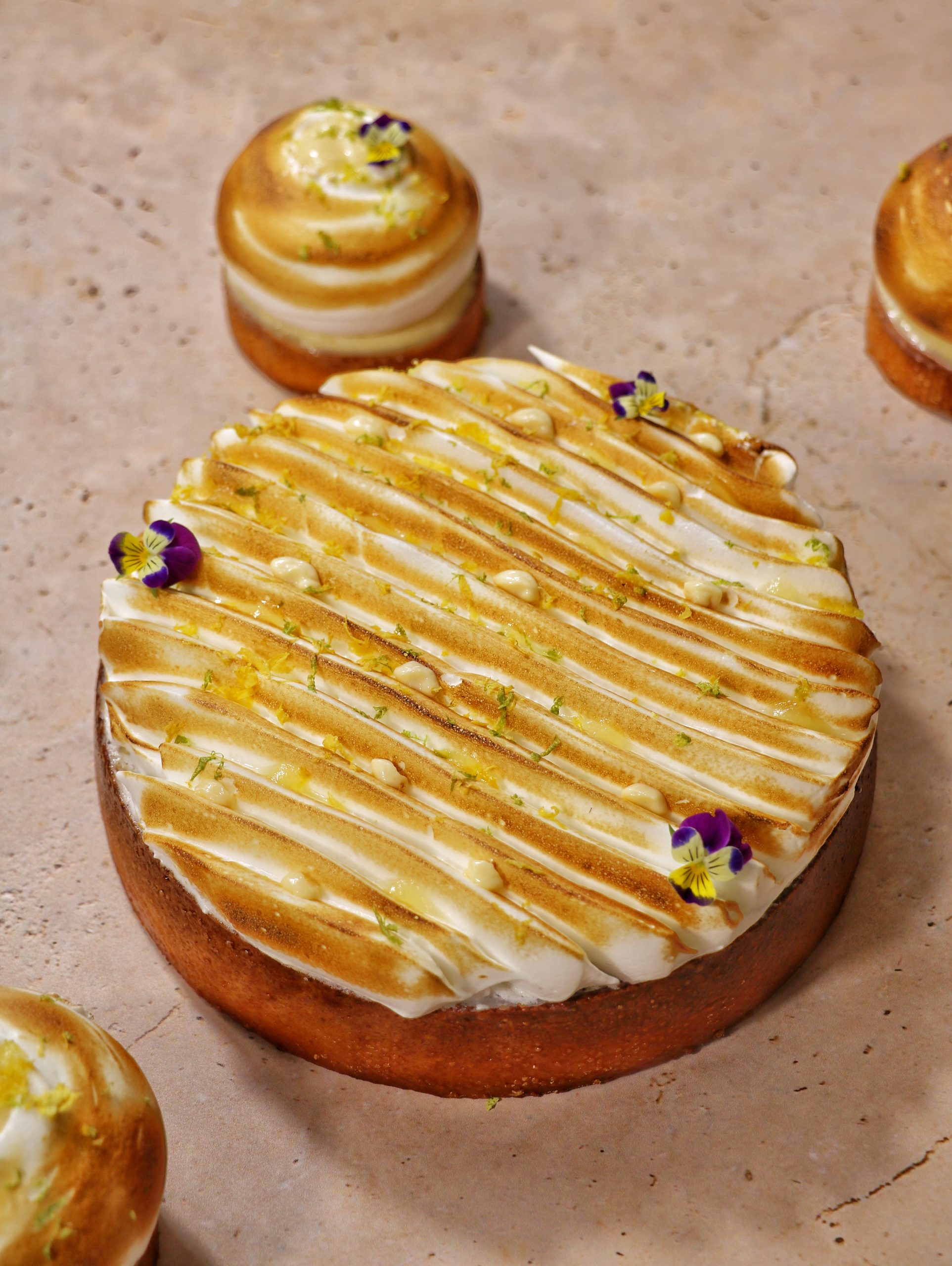 La tarte Citron Meringuée est un incontournable de la gourmandise acidulée. Une pâte sucrée dorée et croustillante renferme une crème d’amandes délicatement parfumée aux zestes de citron, surmontée d’un gel intense de citron vert qui pétille en bouche. Sa crème onctueuse aux deux citrons, à la fois douce et acidulée, fond avec volupté. Le tout est couronné d’une meringue italienne légère, moelleuse et délicatement citronnée, nappée de zestes frais qui réveille chaque bouchée. Un dessert irrésistible, frais et fondant, qui fait vibrer les papilles.